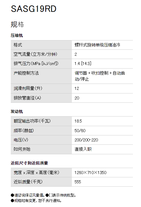 AIRMAN 电机压缩机SASG19RD系列