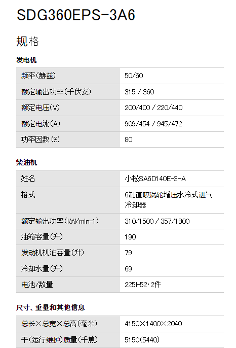 AIRMAN 发动机发电机SDG360EPS-3A6系列