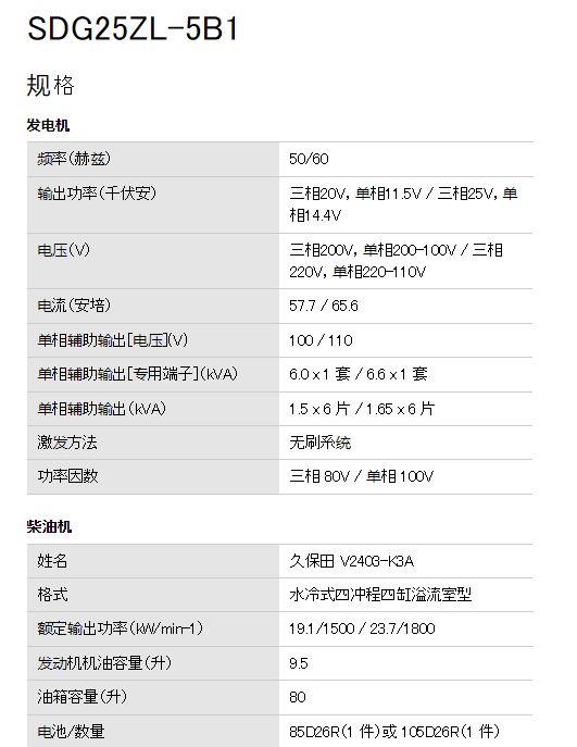 AIRMAN 发动机发电机SDG25ZL-5B1系列