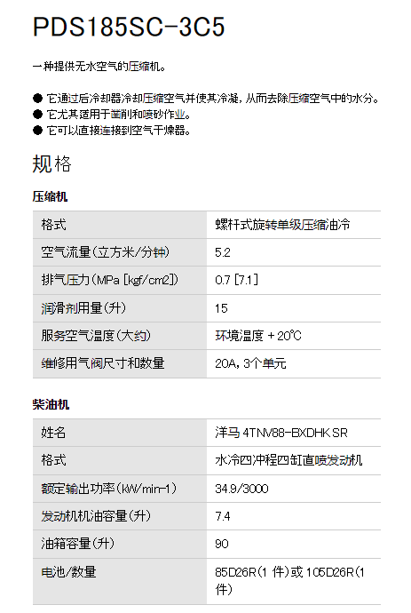 AIRMAN 发动机压缩机PDS185SC-3C5系列