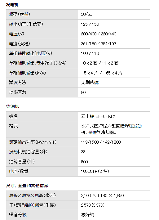 AIRMAN 发动机发电机SDG150LX-5B1系列