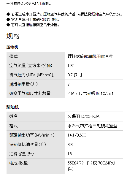 AIRMAN 发动机压缩机PDS65LC-5C5系列