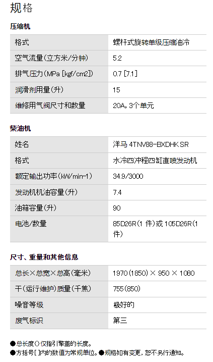 AIRMAN 发动机压缩机PDS185S-5C5系列